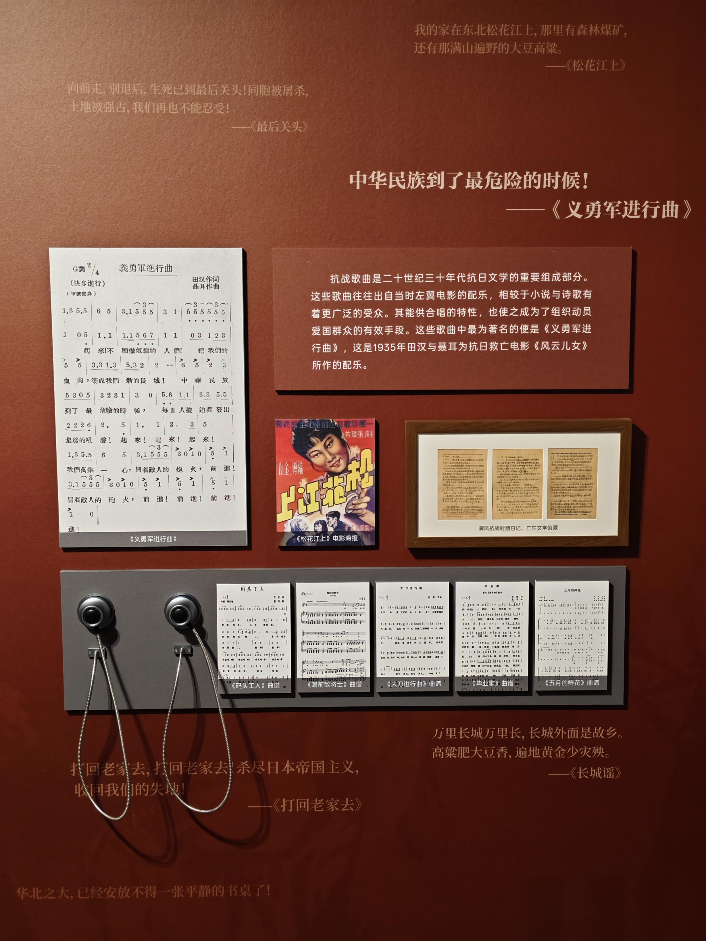 除了手稿展示外,展览现场还有互动体验项目,让观众更直观感悟历史、留存记忆。在声音体验区,可以用耳机聆听《黄河大合唱》、《松花江上》等抗战歌曲,感受救亡图存的时代之音;在“我的和平宣言”互动系统前,可以上传照片和文字,选择巴金、老舍等作家的和平金句,生成独属于自己的主题海报;通过穿梭80年互动装置,书写电子信笺投递,可以模拟古今对话。不少市民都上前尝试体验、拍照打卡。